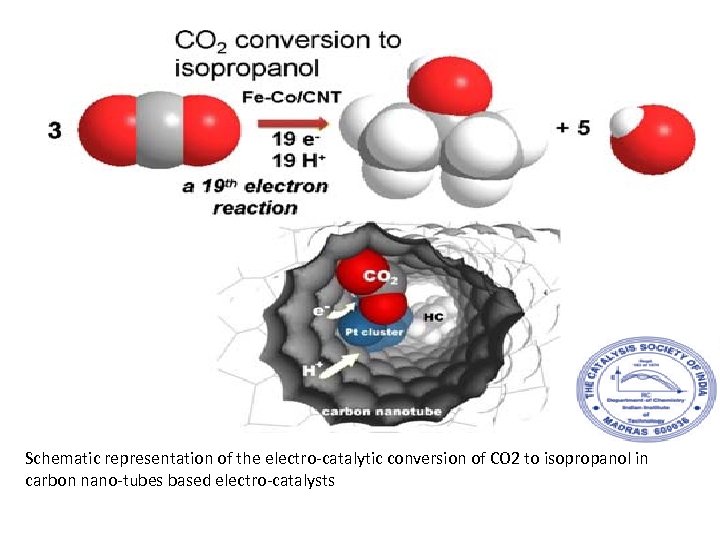 Schematic representation of the electro-catalytic conversion of CO 2 to isopropanol in carbon nano-tubes based electro-catalysts