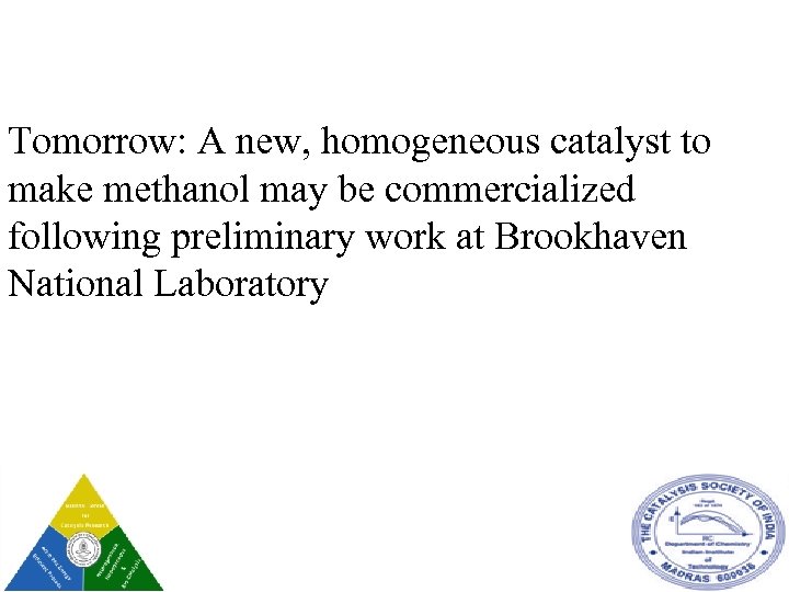 Tomorrow: A new, homogeneous catalyst to make methanol may be commercialized following preliminary work at Brookhaven National Laboratory