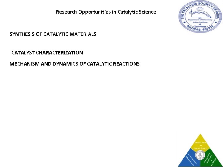 Research Opportunities in Catalytic Science SYNTHESIS OF CATALYTIC MATERIALS CATALYST CHARACTERIZATION MECHANISM AND DYNAMICS OF CATALYTIC REACTIONS