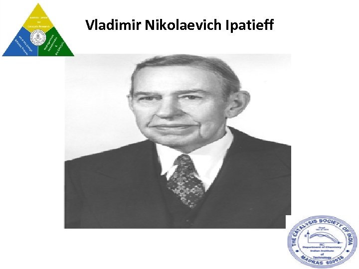 Vladimir Nikolaevich Ipatieff • Vladimir Nikolaevich Ipatieff was born on 21 November 1867 in Moscow, Russia. His early career was that of a military man: in 1887 he graduated from the Mikhailovskoe artilleriiskoe uchilishche, and in 1892 from the Mikhailovskaia artilleriiskaia akademiia. But his interest in chemistry diverted him from a strictly military path. Teaching the subject at the Artillery Academy, he went on to get a doctorate from St. Petersburg University in 1907, while advancing in military rank to major general in 1910. From 1906 to 1916, he taught chemistry at the University as well, and was made a member of the Imperial Academy of Sciences in 1916. As a lieutenant general during the First World War, he served as Director of the Commission for Preparation of Explosives and Chairman of the Chemical Committee. Following the revolution, he remained in the Soviet Union, where he founded the High Pressure Institute in 1927. But in 1931, while on a trip abroad, he decided not to return and came to the United States, where he taught at Northwestern University from 1931 to 1935. In 1939 he was elected a member of the National Academy of Sciences. Ipatieff died in Chicago on 29 February 1952. Northwestern University dedicated a laboratory in his honor.