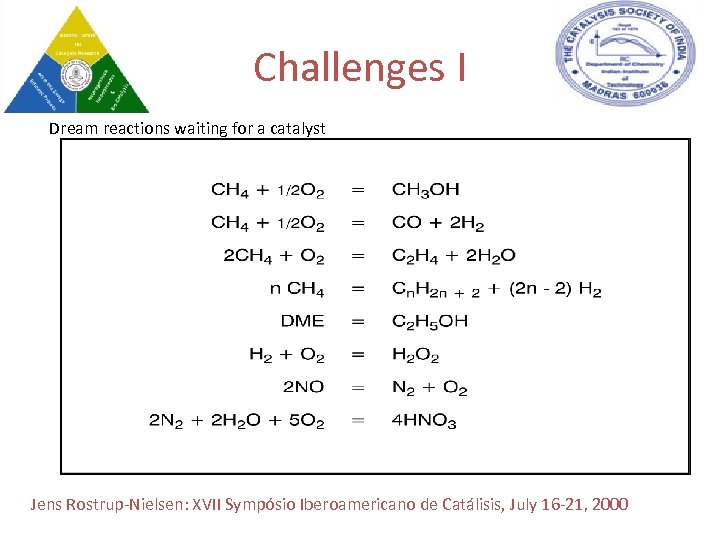 Challenges I Dream reactions waiting for a catalyst Jens Rostrup-Nielsen: XVII Sympósio Iberoamericano de Catálisis, July 16 -21 , 2000