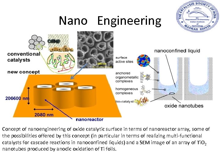 Nano Engineering Concept of nanoengineering of oxide catalytic surface in terms of nanoreactor array, some of the possibilities offered by this concept (in particular in terms of realizing multi-functional catalysts for cascade reactions in nanoconfined liquids) and a SEM image of an array of Ti. O 2 nanotubes produced by anodic oxidation of Ti foils.