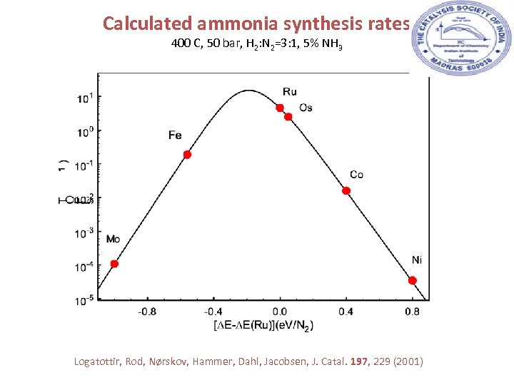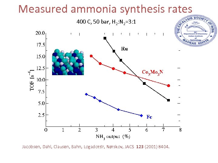 Measured ammonia synthesis rates 400 C, 50 bar, H 2: N 2=3: 1 Jacobsen, Dahl, Clausen, Bahn, Logadottir, Nørskov, JACS 123 (2001) 8404.