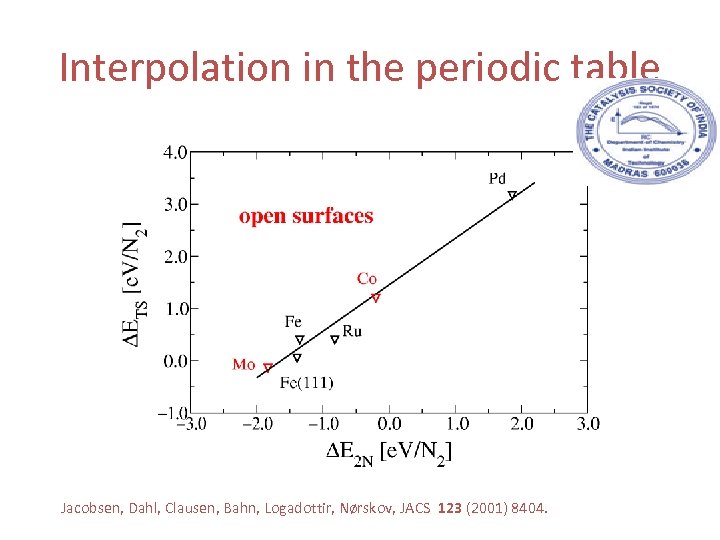 Interpolation in the periodic table Jacobsen, Dahl, Clausen, Bahn, Logadottir, Nørskov, JACS 123 (2001) 8404.