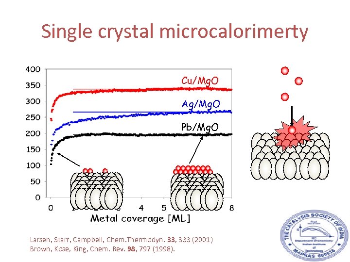 Single crystal microcalorimerty Cu/Mg. O Ag/Mg. O Pb/Mg. O Larsen, Starr, Campbell, Chem. Thermodyn. 33, 333 (2001) Brown, Kose, King, Chem. Rev. 98, 797 (1998).