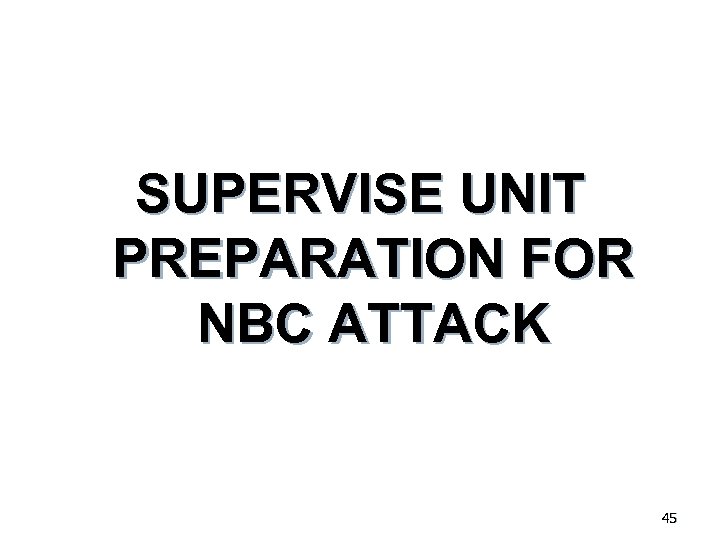 SUPERVISE UNIT PREPARATION FOR NBC ATTACK 45