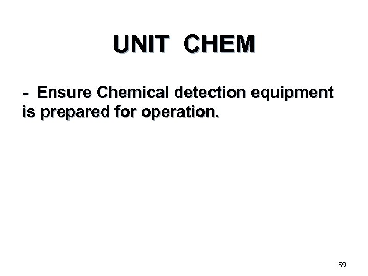 UNIT CHEM - Ensure Chemical detection equipment is prepared for operation. 59