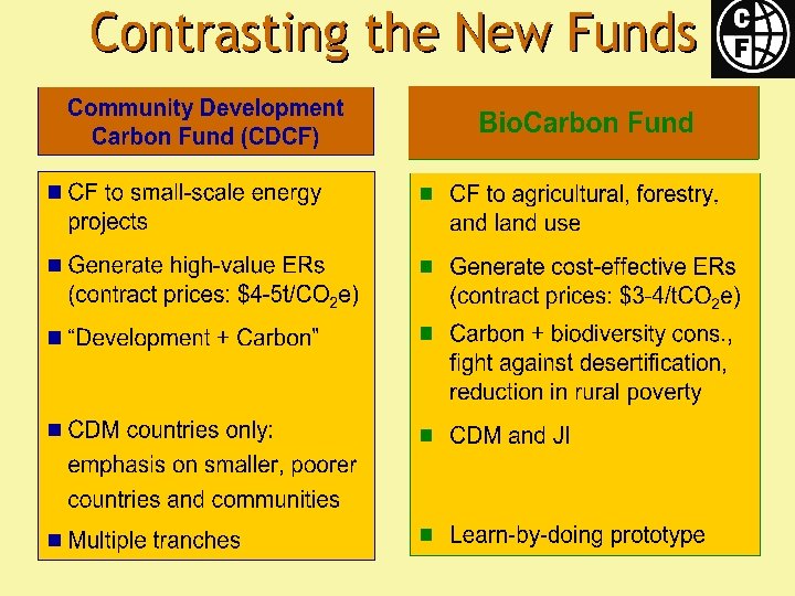 World Bank Carbon Finance Vehicles Netherlands CDM Facility Italian Carbon Fund Bio Carbon Fund