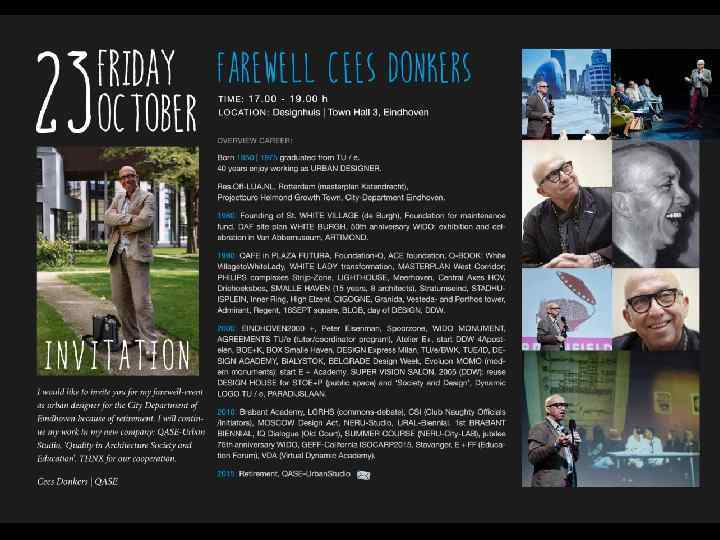 Cees Donkers urban designer ‘City as a LAB’ - city - culture - design c. donkers@eindhoven. nl cees. donkers@gmail. com FACEBOOK presentatie