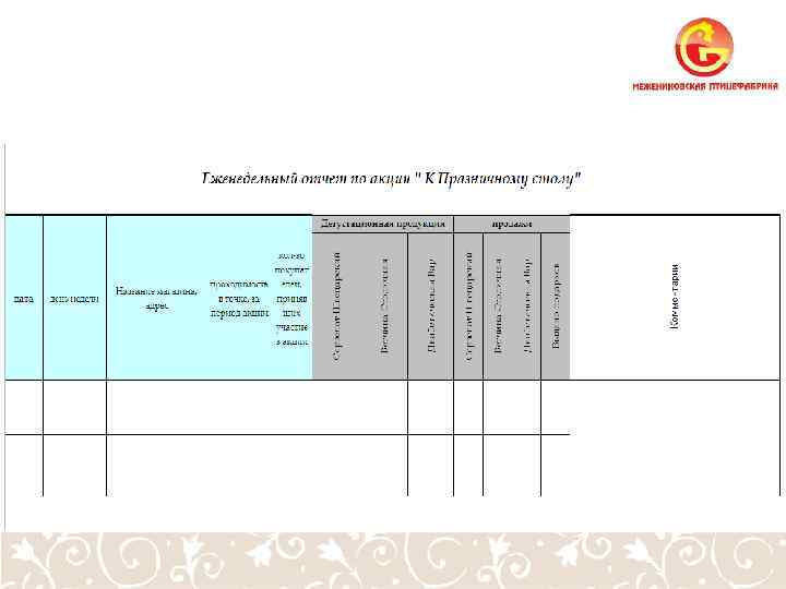 Цель акции: стимулировать продажи продукции торговой марки МПФ Конечная цель: Покупатель после дегустации или консультации должен пойти и купить продукт ТМ «МПФ»