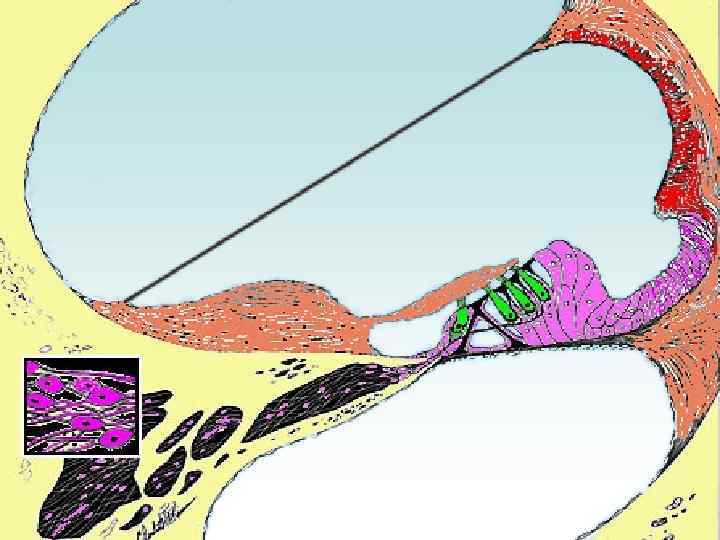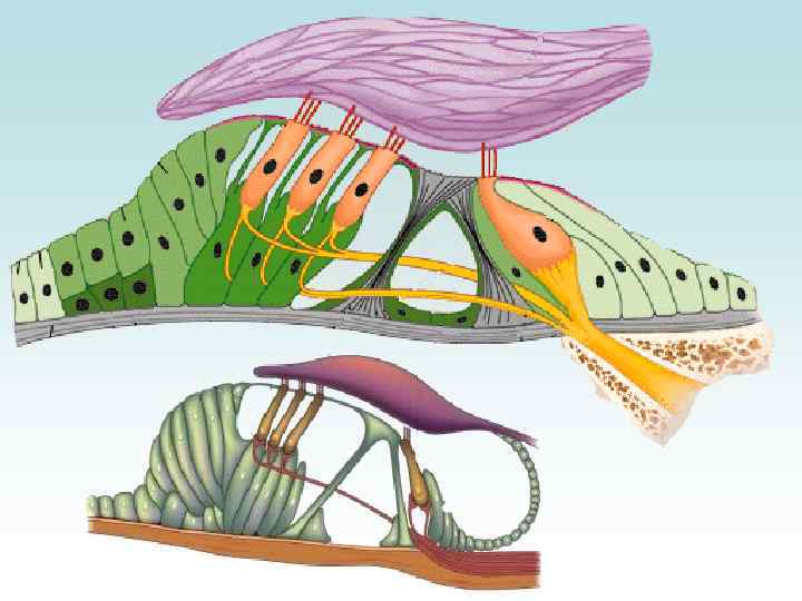 Особенности организации системы восприятия звука Рецепторный аппарат представлен двумя типами клеток: внутренними волосковыми (ВВК) и наружными волосковыми (НВК); рецепторное поле имеет выраженный продольный (от основания к вершине улитки) и радиальный градиент (от ВВК к НВК)
