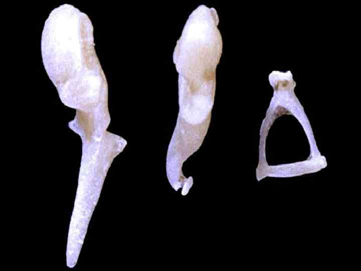 Слуховые косточки Молоточек Длина 8 -9 мм, масса 25 мг Наковальня Длина по длинному отростку 7 мм, по короткому - 5 мм, масса 30 мг Стремя Длина - 3 мм, масса - 4 мг