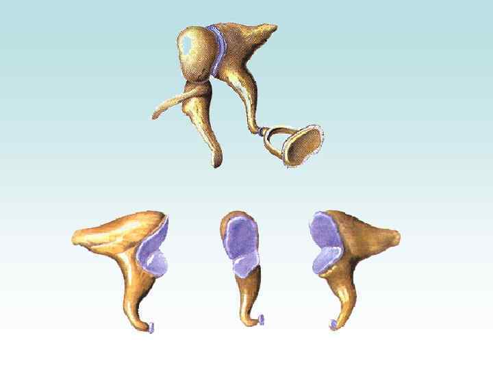 Развитие уха Дифференцировка слухового пузырька дает три больших отдела внутреннего уха: 1) ductus endolymphaticus, saccus endolymphaticus, 2) утрикулярная порция, 3) саккулярная порция.