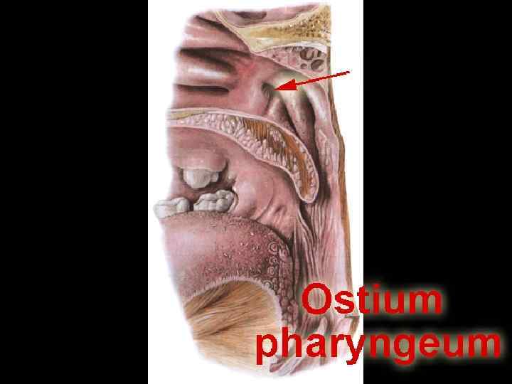 Tuba auditiva (otosalpinx) Состоит из хрящевой (эластической) части - внутренняя, и костной - наружная Обе части образуют угол 150° Общая длина 37 мм Диаметр в барабанной полости до 6 мм Сужение - в участке перехода хрящевой части в костную (1, 5 мм)