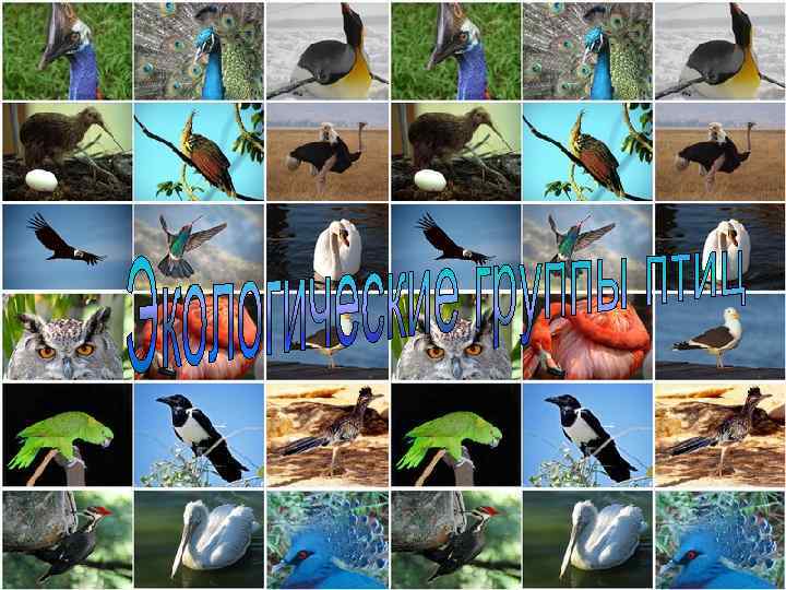 Задачи 1. Обучающая: – дать понятие экологической группы птиц ; научить выделять признаки птиц той или иной экологической группы 2. Воспитывающая: привлечь внимание к многообразию и красоте орнитофауны; продолжить экологическое воспитание; прививать интерес к исследованию живой природы.