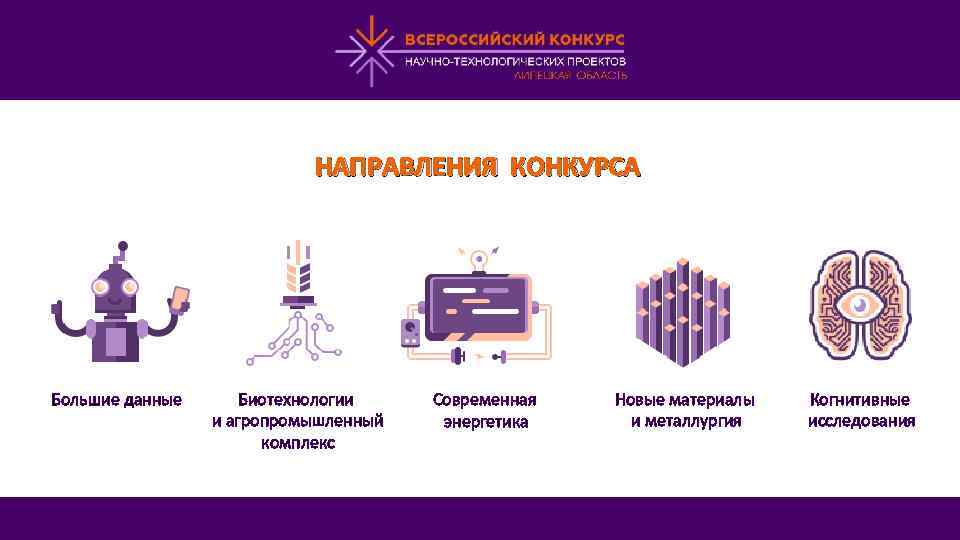 НАПРАВЛЕНИЯ КОНКУРСА Большие данные Биотехнологии и агропромышленный комплекс Современная энергетика Новые материалы и металлургия Когнитивные исследования