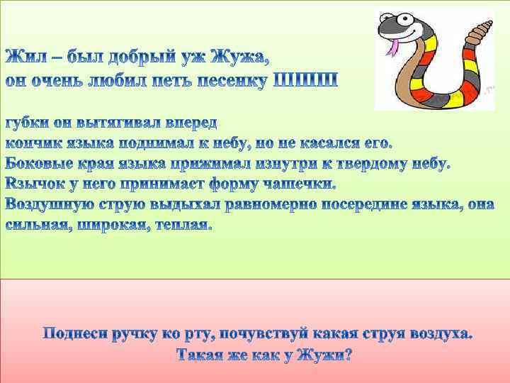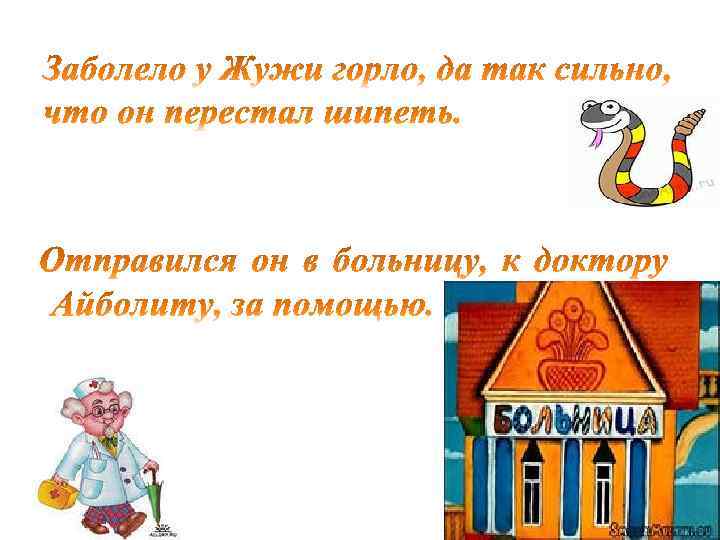 Жужа так увлекся, что и не заметил, как дополз. . . Вот и вылечил доктор Жужу. Он пополз и зашипел Ш–Ш–Ш–Ш-Ш
