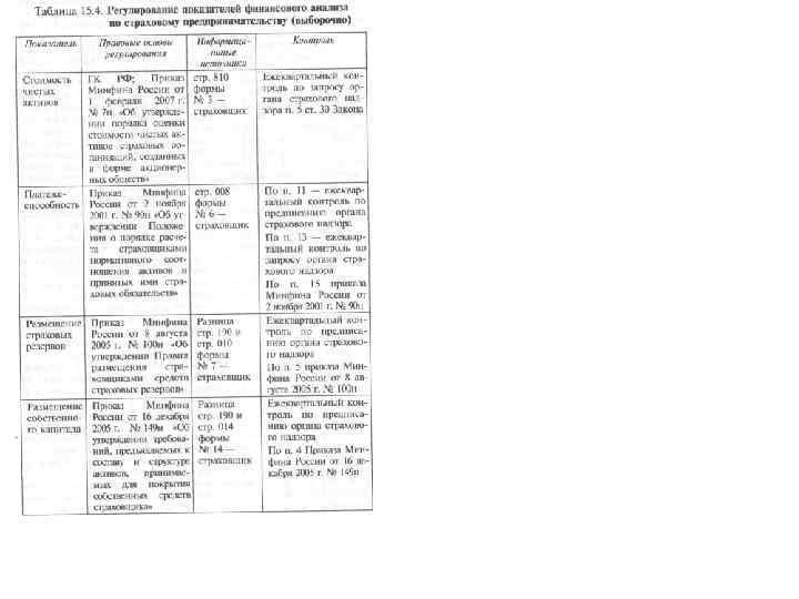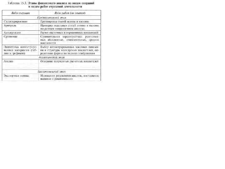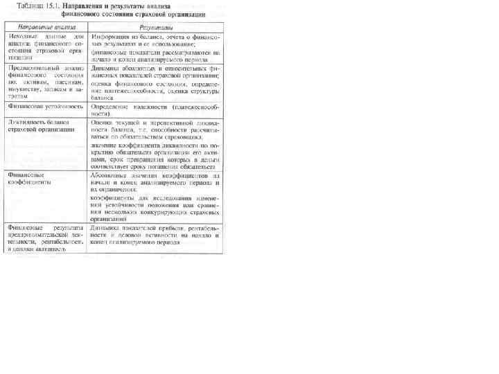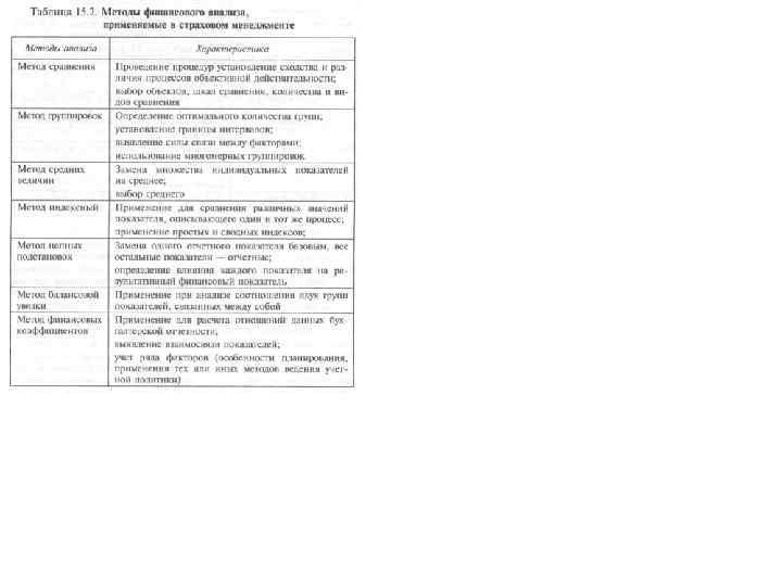 Страховой менеджмент при проведении финансового анализа основывается на принципах: q оперативности — незамедлительном использовании полученных аналитических данных, выводов для улучшения финан совой деятельности; qконкретности — всестороннем изучении отчетных данных о финансовой деятельности; qсистематичности — систематическом проведении анализа по определенному плану и программе; qобъективности — подборе необходимого аналитического материала, сопоставимости, критическом и беспристрастном его изучении.