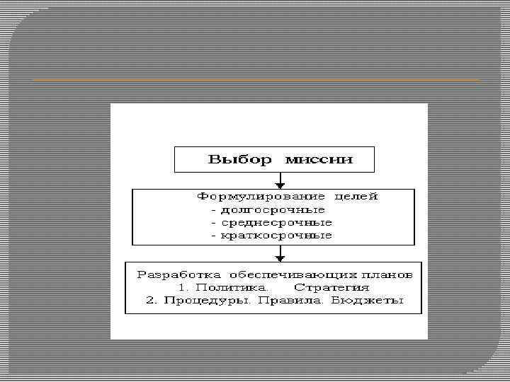 ОРИЕНТАЦИЯ ЦЕЛЕЙ ВО ВРЕМЕНИ Цели обычно устанавливаются на длительные или краткие временные промежутки. Долгосрочная цель, согласно Стейнеру, имеет горизонт планирования, приблизительно равный пяти годам, иногда больше — для передовых в техническом отношении фирм. Краткосрочная цель в большинстве случаев представляет один из планов организации, который следует завершить в пределах года. Среднесрочные цели имеют горизонт планирования от одного до пяти лет.