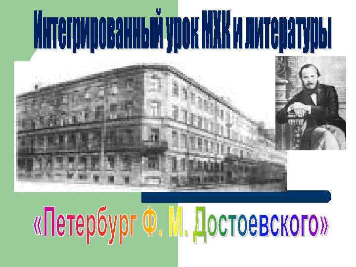 Цели урока: l l l расширение познаний в области архитектуры русского барокко и классицизма; знакомство с архитектурой Петербурга; изучение Петербурга Достоевского в романе «Преступление и наказание» : Улица Петербурга. Пейзаж Петербурга. Сцены уличной жизни. Интерьеры. осмысление главного конфликта романа – конфликта между Раскольниковым и миром, им отрицаемым; приобщение к мировой художественной культуре.