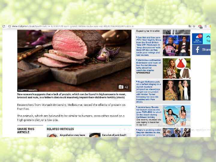 «Жиры и углеводы в рационе современного человека обеспечивают его достаточным количеством калорий, - говорит автор исследования, аспирант Вэньпэн Ю (Wenpeng You). - Мясной белок начинает перевариваться позже, поэтому человек получает избыток энергии, которая затем преобразуется в жир. В нескольких предыдущих исследованиях авторы утверждали, что увеличение риска связано с содержанием жира в мясе. Мы, наоборот, полагаем, что именно мясной белок способствует ожирению» . По данным ВОЗ, более 1, 9 млрд взрослых людей в мире в возрасте от 18 лет имеют избыточный вес (ИМТ ≥ 25). Лишний вес связывают с риском развития сердечнососудистых заболеваний, сахарным диабетом 2 типа и некоторыми видами рака. http: //www. univadis. ru/medical-news/183/Potreblenie-myasa-sposobstvuet-rasprostraneniyuozhireniya-v-mire? utm_source=adhoc+emails&utm_medium=email&utm_campaign=bestofsummerarticles_uniannouncement_rusru_20160831&utm_content=1021807&utm_term=manual Meat consumption providing a surplus energy in modern diet contributes to obesity prevalence: an ecological analysis // BMS Nutrition, 2016; doi: 10. 1186/s 40795 -016 -0063 -9