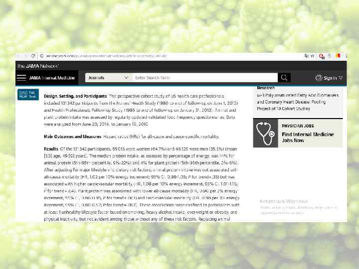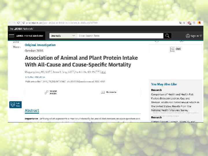 Употребление животного белка связали с ранней смертью Toby Bochan / Flickr Международная группа ученых обнаружила, что употребление животного белка связано с сокращением продолжительность жизни, а растительного — с ее продлением. Причем эта закономерность наблюдается только в присутствии хотя бы одного фактора риска, связанного с образом жизни. Результаты исследования опубликованыв JAMA Internal Medicine. Сотрудники Гарвардского университета с коллегами провели метаанализ данных, полученных в проспективных когортных исследований здоровья 131 342 американских медработников (64, 7 процента женщин) Nurses’ Health Study (срок наблюдения 32 года) и Health Professionals Follow-up Study (срок наблюдения 26 лет). Потребление питательных веществ регулярно регистрировали с помощью сертифицированных опросников. Медианное потребление белка составило 14 процентов от общей калорийности пищи для животного белка и четыре процента — для растительного. Статистическая обработка данных с поправками на основные факторы риска, связанные с диетой и образом жизни, показала, что потребление животного белка связано с повышением смертности, в превую очередь от сердечно-сосудистых причин (в среднем на восемь процентов на каждые 10 процентов повышения их доли в общей энергетической ценности пищи). Растительный белок, напротив, снижал смертность (в среднем на 10 процентов на каждые три процента повышении доли в энергопотреблении).