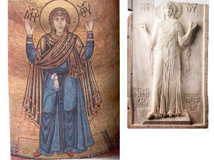 Формальный уровень: конструкция Вес центральная фигура легче чем фигуры по краям придание равновесия правое тяжелее левого Рим катакомба Коммодила Богоматерь с Младенцем и св. мучениками Феликсом и Адауктусом