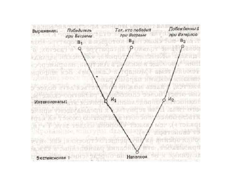 Семантический треугольник • Знаком называется материальный объект, который для некоторого интерпретатора выступает в качестве представителя какого-то другого предмета. • Значение знака (экстенсионал)— предмет, представляемый (репрезентируемый) данным знаком. • Смысл знака (интенсионал) — информация о репрезентируемом предмете, которую содержит сам знак или которая связывается с этим знаком в процессе общения или познания. Взаимосвязь этих характеристик можно графически представить в виде семантического треугольника.