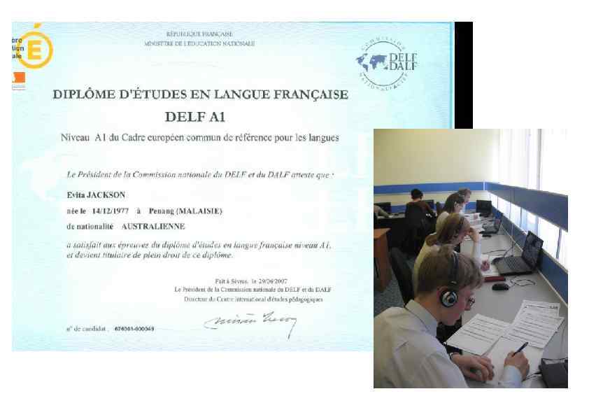 С 2008 года в Центре французской культуры уже более 100 человек стали обладателями международного сертификата DELF / DALF С 2013 года проводится выездная сессия в г. Инта для учащихся Гимназии № 2 с углубленным изучением французского языка В Центре работают три сертифицированных экзаменатора DELF / DALF