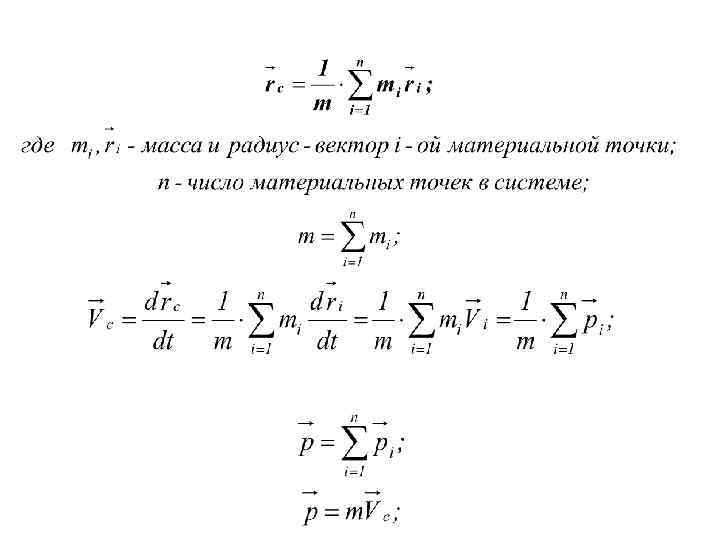 Центр инерции. Теорема о движении центра инерции. Центр инерции – геометрическая точка, положение которой характеризует распределение масс в механической системе. Положение центра инерции С относительно начала системы отсчёта О определяют радиус-вектором rc: