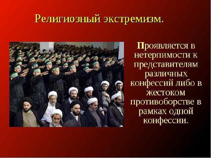 Религиозный Экстремизм – это отрицание системы традиционных для общества религиозных ценностей и догматических устоев, а также агрессивная пропаганда "идей", противоречащих им