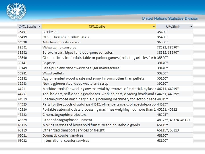 CPC Ver. 2. 1 changes o Structural changes (cont. ) n n n 6 in chemicals (HS) 9 in pesticides (FAO) 10 in other goods (HS) 37 in R&D 4 in telecommunications 16 in support services