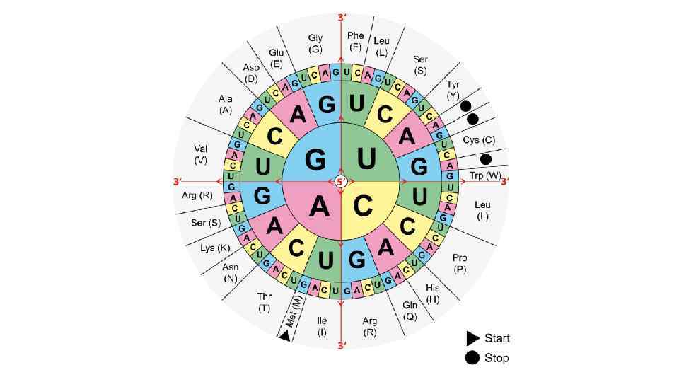 Предполагаемый первичный генетический код Первое основание Второе основание Третье основание A U А Lys Met A А Asn Ile U U Stop Leu A U Tyr Phe U