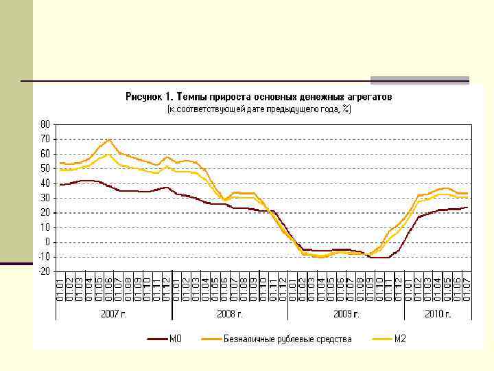 Система агрегатов (методика ЦБ РФ) № п/п Агрегат Алгоритм расчета 1. 1. Денежный агрегат М 0 Наличные деньги в обращении вне банковской системы 1. 2. Денежный агрегат M 1 М 0 + депозиты до востребования + расчетные, текущие счета 1. 3. Денежный агрегат М 2 (денежная масса) М 1 + срочные вклады 1. 4. М 2* (широкие деньги) М 2 + долларовое обращение 1. 5. Денежный агрегат М 3 М 2 + депозитные сертификаты и облигации госзаймов