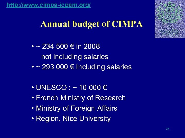 http: //www. cimpa-icpam. org/ Other partners of CIMPA Ministère des Affaires Etrangères http: //www. diplomatie. gouv. fr/en/ Région Provence-Alpes-Côte d'Azur http: //www. regionpaca. fr/ 24