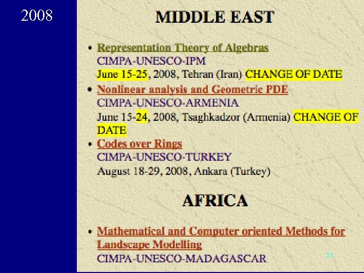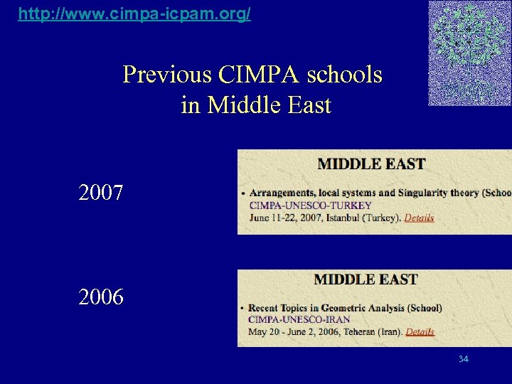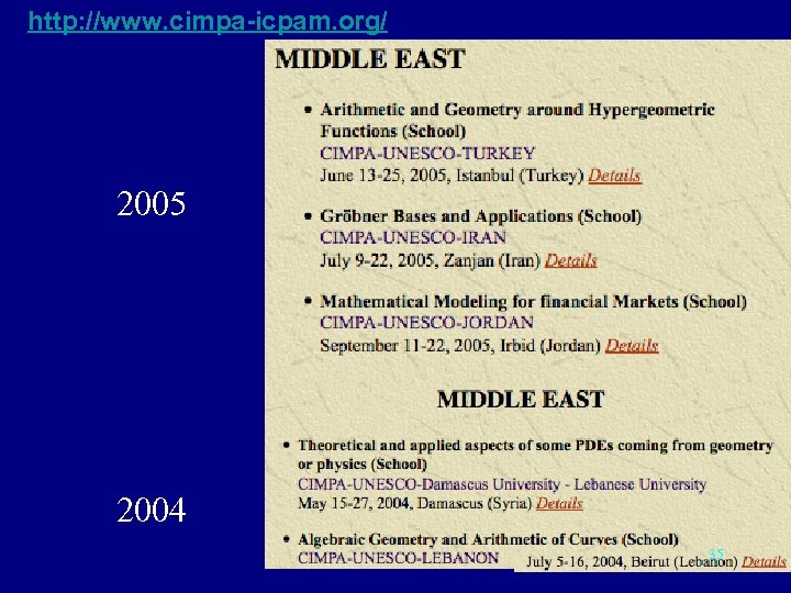 http: //www. cimpa-icpam. org/ Previous CIMPA schools in Middle East 2007 2006 34