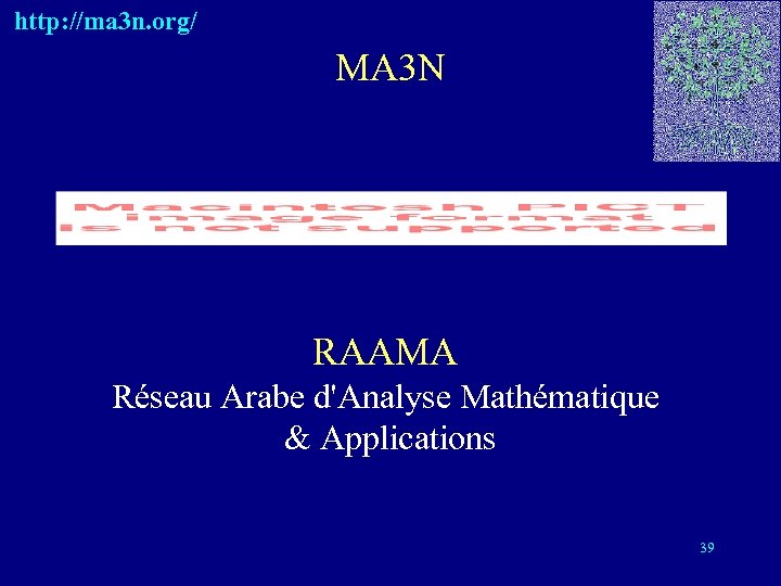http: //ma 3 n. org/ MA 3 N RAAMA Réseau Arabe d'Analyse Mathématique & Applications 39