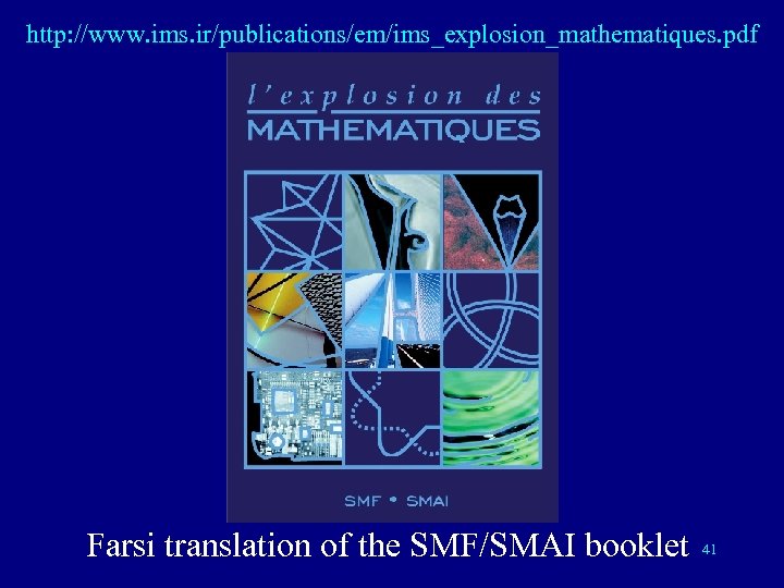 http: //www. ims. ir/publications/em/ims_explosion_mathematiques. pdf Farsi translation of the SMF/SMAI booklet 41