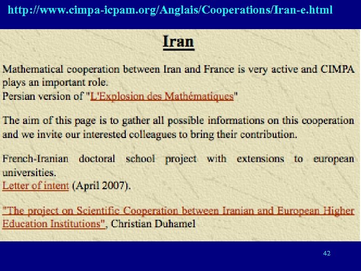 http: //www. cimpa-icpam. org/Anglais/Cooperations/Iran-e. html 42