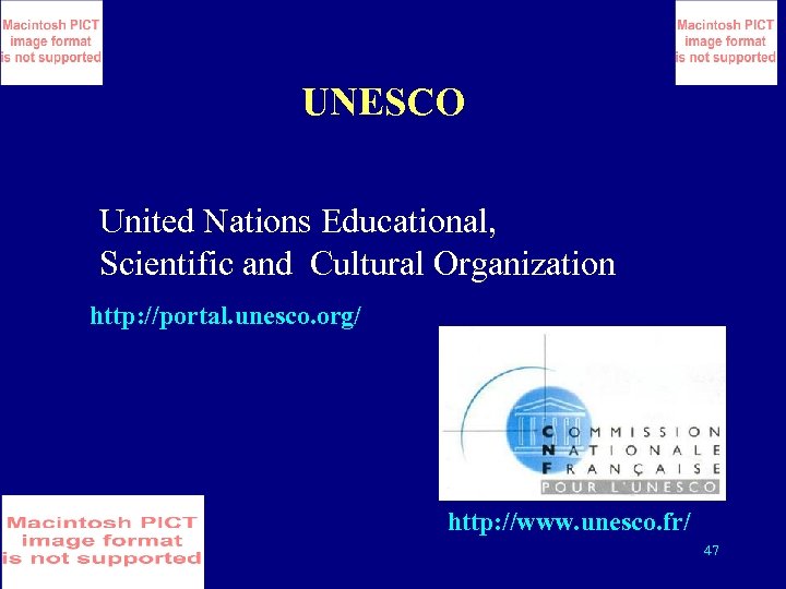 UNESCO United Nations Educational, Scientific and Cultural Organization http: //portal. unesco. org/ http: //www. unesco. fr/ 47