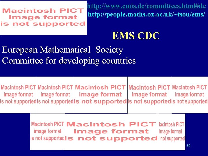 http: //www. emis. de/committees. html#dc http: //people. maths. ox. ac. uk/~tsou/ems/ EMS CDC European Mathematical Society Committee for developing countries 50