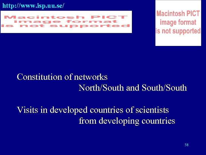 http: //www. isp. uu. se/ Constitution of networks North/South and South/South Visits in developed countries of scientists from developing countries 58