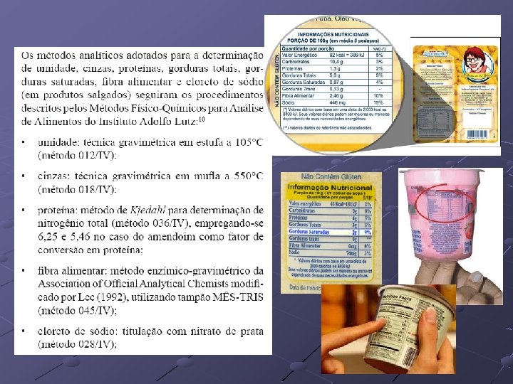 Química Analitica Quantitativa trata da quantificação dos analitos na amostra. É muitas vezes considerada a análise mais importante. - Sódio (5, 0 mg/L ou ppm) - Colesterol (25, 0 mg/L) - Gorduras trans (0, 2 mg/L) - Cloro (1, 0 mg/L) - Mercúrio (0, 01 mg/L)