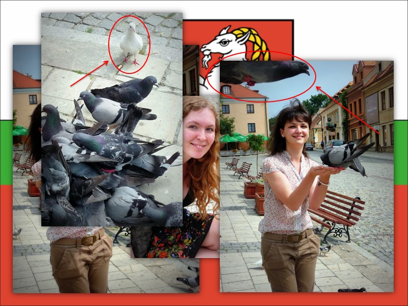 Тут мы познакомились с местными чудаковатыми голубями