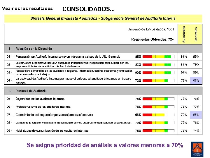 Veamos los resultados CONSOLIDADOS. . . Se asigna prioridad de análisis a valores menores a 70%