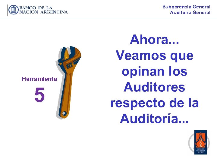 Subgerencia General Auditoría General Herramienta 5 Ahora. . . Veamos que opinan los Auditores respecto de la Auditoría. . .