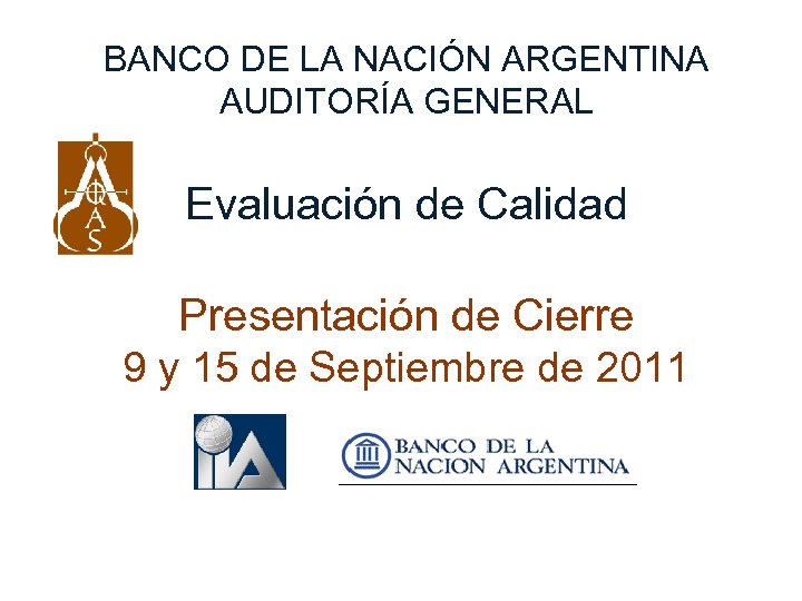 BANCO DE LA NACIÓN ARGENTINA AUDITORÍA GENERAL Evaluación de Calidad Presentación de Cierre 9 y 15 de Septiembre de 2011