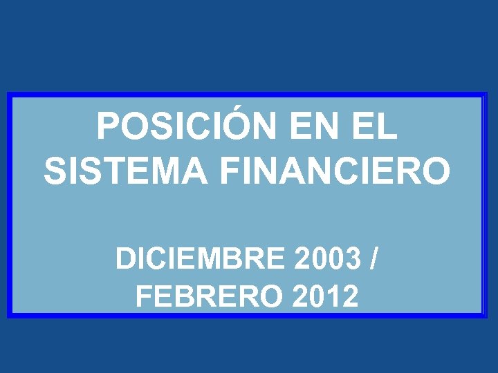 POSICIÓN EN EL SISTEMA FINANCIERO DICIEMBRE 2003 / FEBRERO 2012