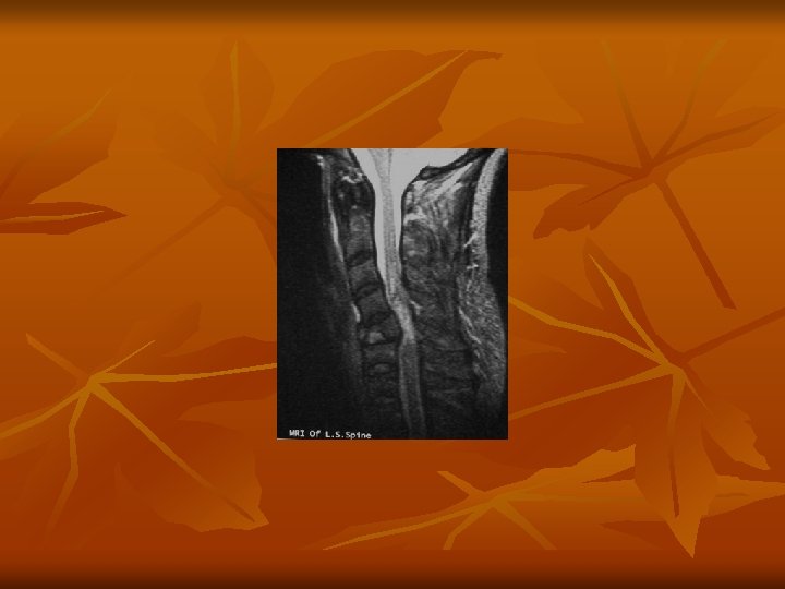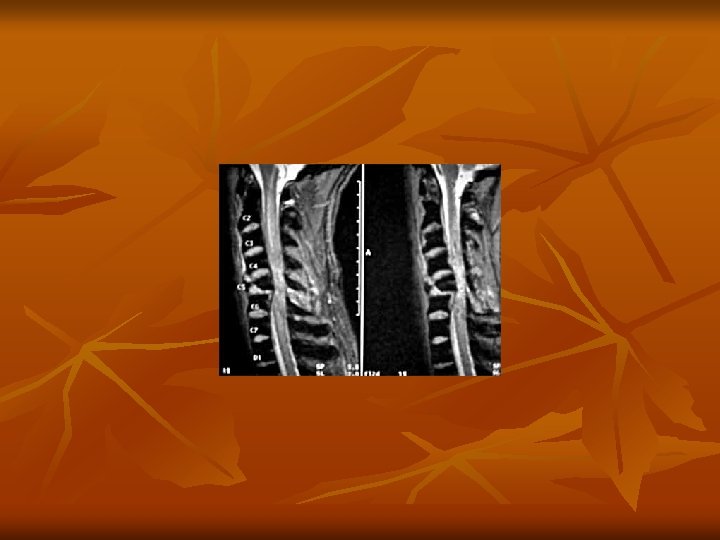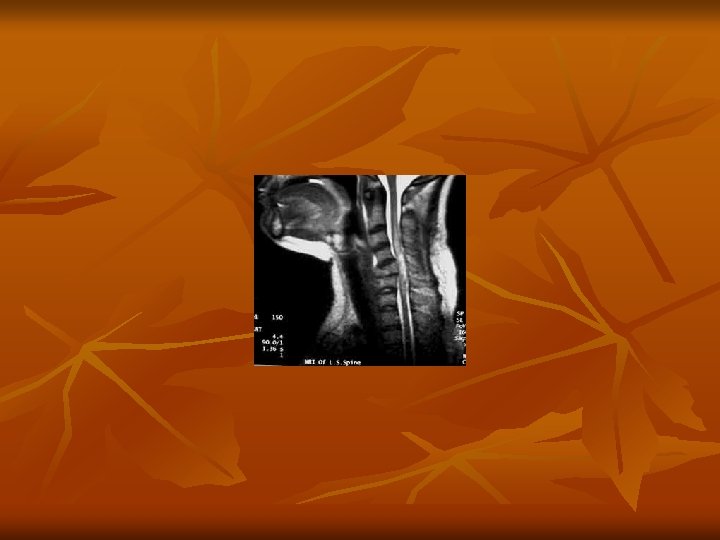 17/M 8 days Incomplete C 5 -6 dislocation 70/M 2 days Incomplete # 0 f post. arch 25/M 14 days Complete C 5 -6 dislocation 48/M 4 hrs. Incomplete C 4 -5 dislocation 20/M 1 day Complete C 6 # 37/M 14 hrs. Complete C 6 -7 dislocation 22/M 14 hrs. NO DEFICIT Whiplash injury 35/F 3 days Complete C 5 # 58/M 20 days Incomplete SCIWORA 27/M 1 days Complete Burst # C 5 45/F 50/F 26 hrs 6 days Incomplete C 5 # Compression # C 5