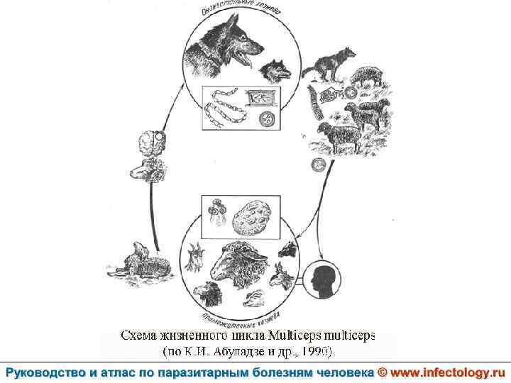 Ценуроз (шифр по МКБ 10 – B 71. 8)– спорадически встречающееся заболевание человека, вызываемое личиночной формой (ценуром) гельминтов рода Multiceps, половозрелые формы которых паразитируют у собак и диких волчьих. . Проявляется разнообразными клиническими симптомами в зависимости от вида паразита.